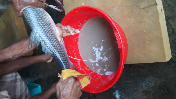 - cÖRbbKvix ¯¿x I cyiæl gvQ¸‡jv‡K 0.5-1.0 wcwcGg cUvwmqvg cvigv½v‡bU `ªe‡Y †Mvmj Kwi‡q Zvici Spent fish cyKz‡i †Q‡o †`qv nq